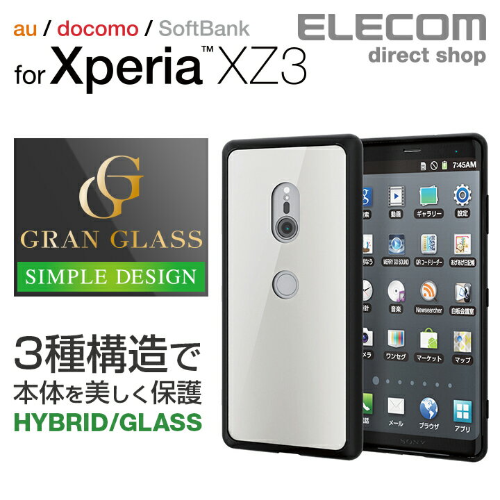Xperia XZ3用 ハイブリッドケース ガラス 背面カラー TPU素材 スマートフォン スマホ Android ホワイト スマホケース PM-XZ3HVCG3WH