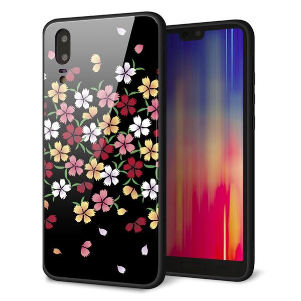 HUAWEI P20 EML-L29C スマホケース 背面 ガラス TPU デザイン 【 YJ323 和柄 なでしこ 】 印刷 光沢 メール便送料無料