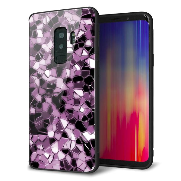 Galaxy S9+ SCV39 ケース カバー 背面 ガラス TPU デザイン ガラプリ 【テクニカルミラーパープル】 印刷 光沢 メール便送料無料