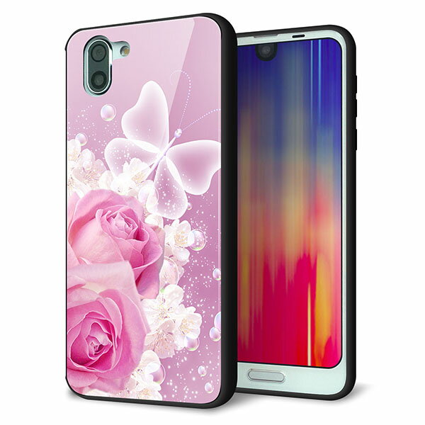 au AQUOS R2 SHV42 ケース カバー スマホケース 背面 ガラス TPU ガラプリ 【ローズロマンス 】 メール便送料無料