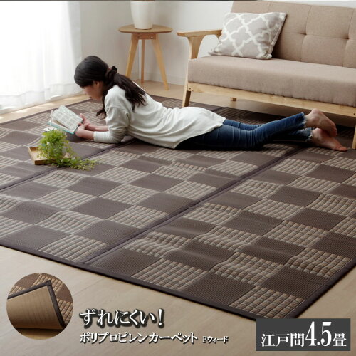 br(ブラウン) 裏貼りppカーペット 『fウィード』 サイズ 江戸間4.5畳(約261×261cm) カラー ブラウン 組成 素材:表地=ポリプロピレン100% 裏地=ウレタンフォーム3mm ※四方ヘリ 原産国 日本 ■ポリプロピレン素材を細いパイプ状にして織り込んだ敷物です。